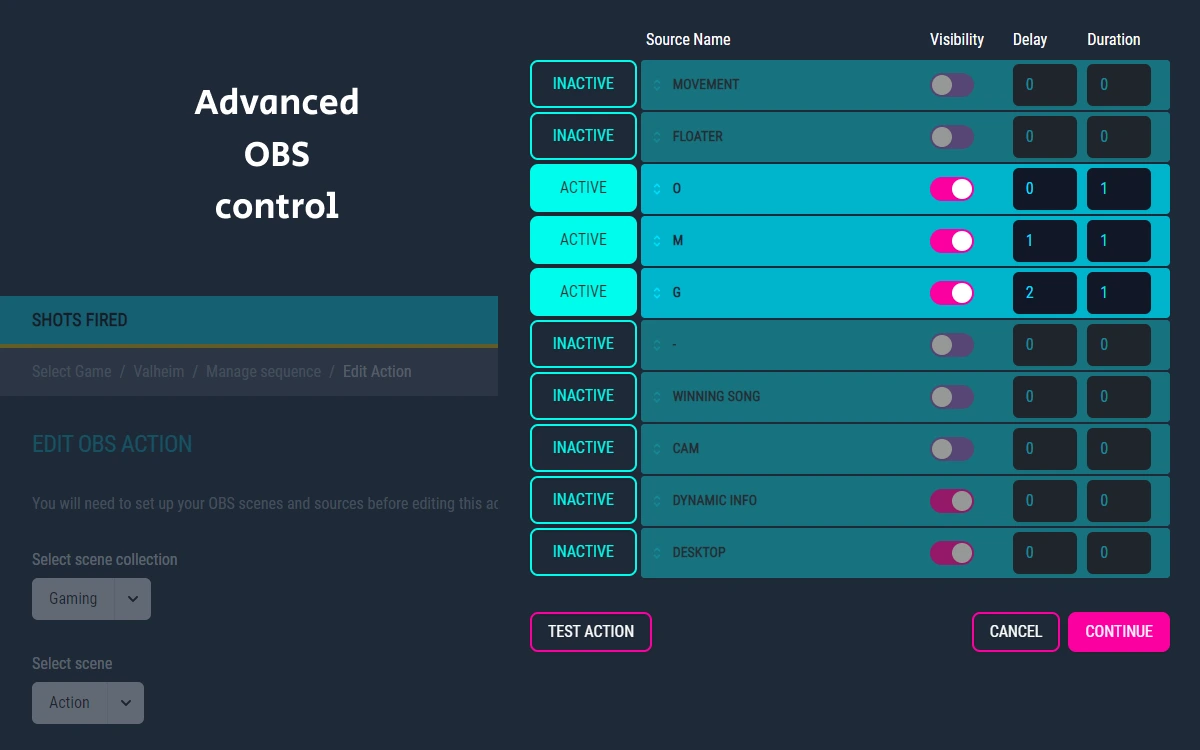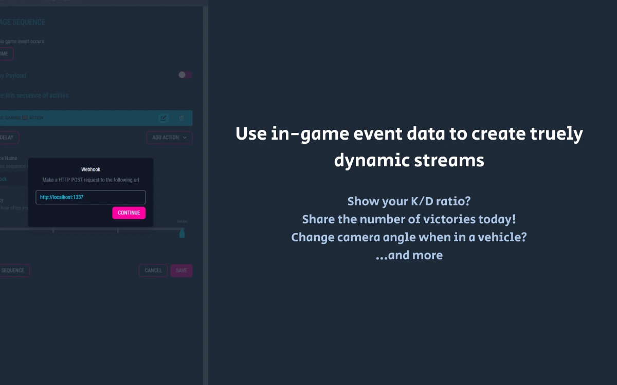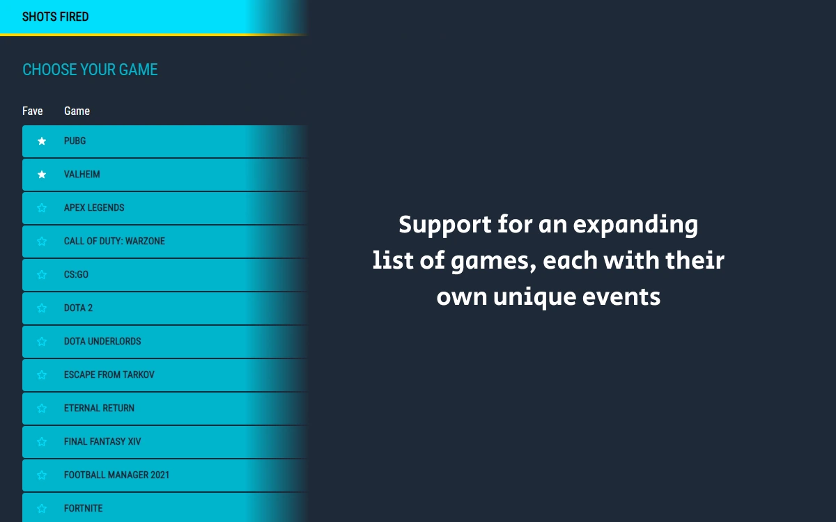 No more fiddling with buttons on a stream deck, or trying to remember a hotkey whilst you're deep in action. Just setup, save and let Shots Fired take control whilst you sit back and play.